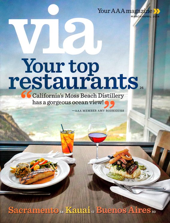 VIA Magazine Features the Moss Beach Distillery as a Member Favorite Destination Restaurant